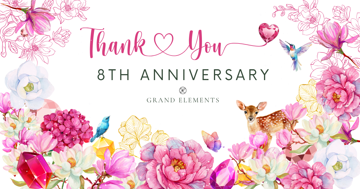 2025年8月26日GRAND ELEMENTSは、皆さまのあたたかいご愛顧に支えられ、無事に【8周年】を迎えることができました。心より深く御礼申し上げます。